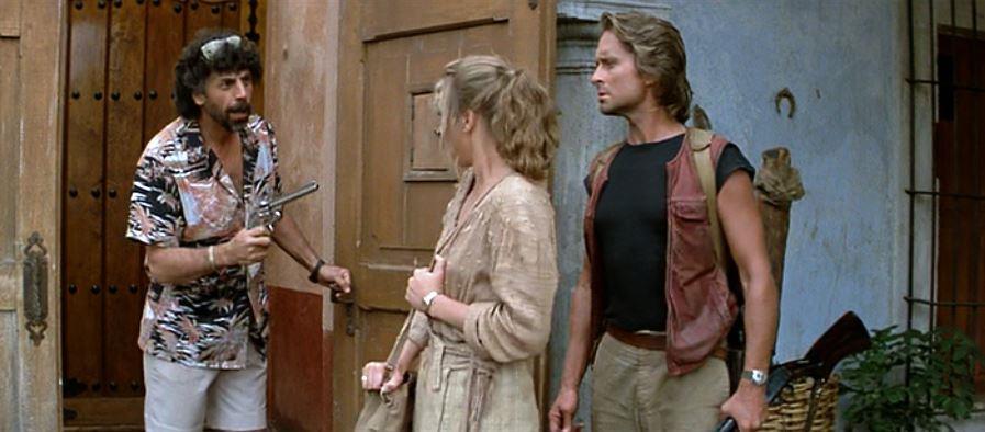 I mean, in the heart of Columbian wilderness of narcotics and military juntas, the heroine saves herself and her very own, newly found “beloved Jessie” from an imminent death at the hands of the mean drug runners simply because she IS Joan Wilder—a successful romance novelist, whose series is beloved even there. Her Angelina makes the local drug lord “hungry”, as he puts it…